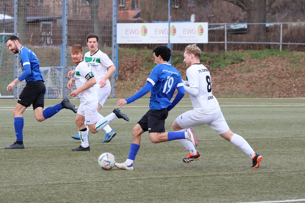 Nach einer kurzen und spielerischen eher durchwachsenen Wintervorbereitung tat man sich auch gegen die Löbtauer schwer. Viel Ballbesitz, wenig Ertrag kennzeichneten die ersten Spielminuten. Aus dem Nichts heraus, dass die eigentlich beruhigende Führung durch Radtke. Ein langer Einwurf schirmte der Kickers Stürmer gut ab, dass er sich nur noch um die eigene Achse drehen musste und den Ball im kurzen Eck unterbrachte. Das Spiel lief nun eigentlich wie gemalt für die Kickers. Die Gastgeber hatten allerdings etwas dagegen kamen immer wieder gefährlich vor den Strafraum. Das Kick and Rush Prinzip funktionierte gegen schläfrige Kickers und so führte die Spielvereinigung schlussendlich nicht unverdient zur Pause mit 2:1.